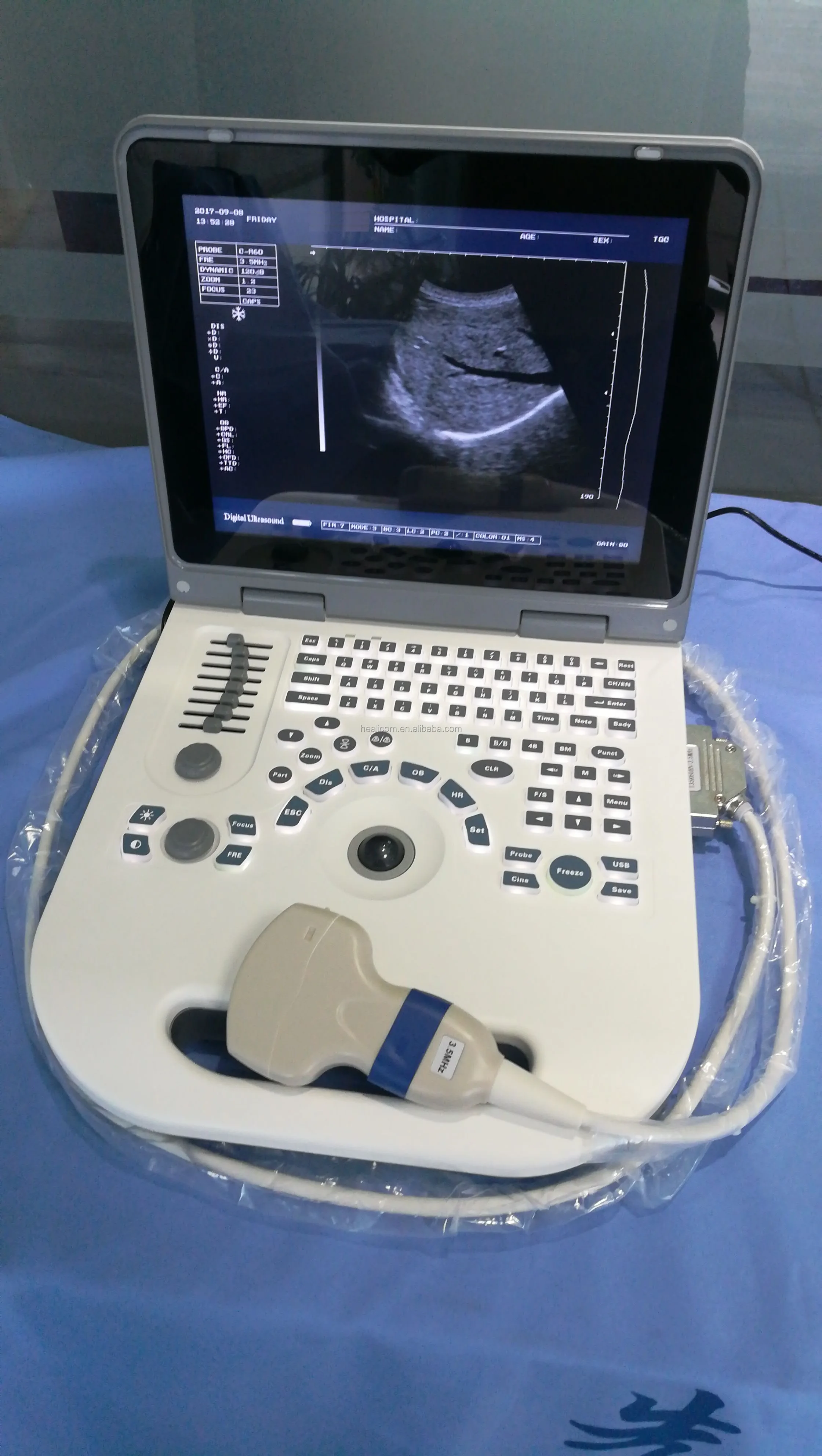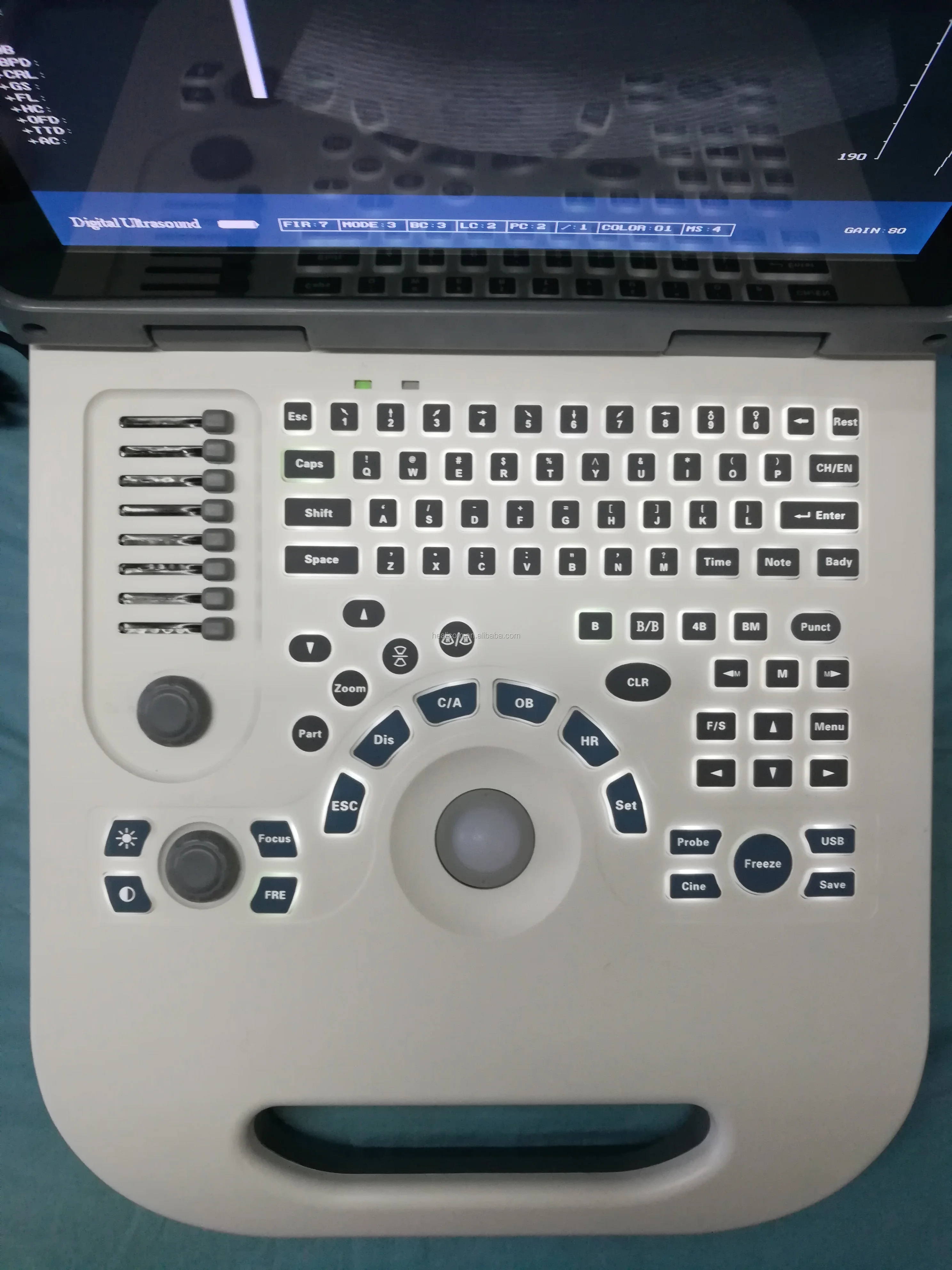 | Factor de multiplicación de la imagen: sonda de matriz convexo 3.5MHz / R60: × 0.8, × 1.0, × 1.2, × 1.5, × 1 .8, × 2.0 (seis modos) × 0.8, × 1.0 (profundidad de penetración de la pantalla). | |